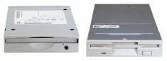 There are two types of 3.5-inch drive bays: internal and external. Internal 3.5-inch drive bays hold drives, like hard drives, that do not need to be touched from outside of the computer. External 3.5-inch drive bays hold drives, like floppy drives, that need their disks to be manually inserted from outside of the computer. The picture above shows a Zip drive on the left and a floppy drive on the right. Below is a picture of a hard drive.